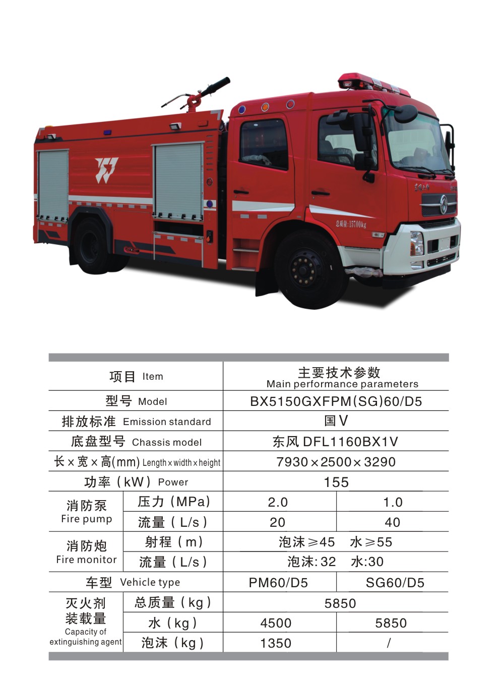 BX5150GXFPM(SG)60/D5 水罐泡沫消防車