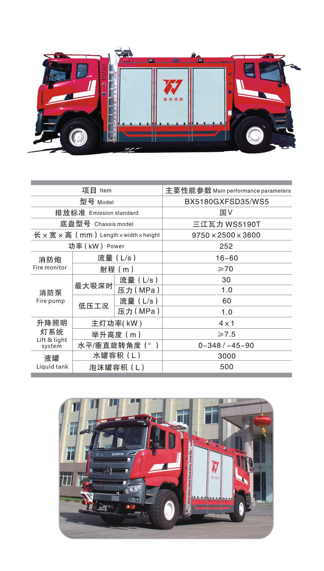 BX5180GXFSD35/WS5 雙向行駛隧道消防車