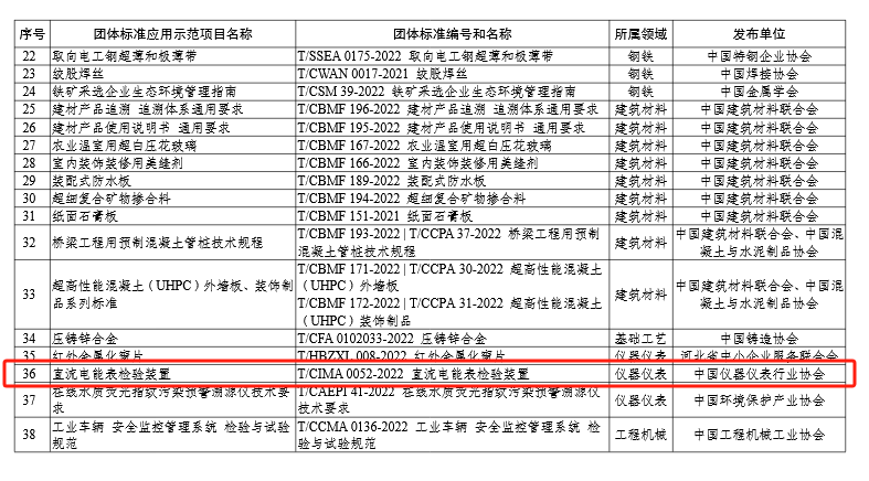 今日,工業和信息化部公布2023年團體標準應用示范項目的通告”,中國儀器儀表行業協會團體標準《直流電能表檢驗裝置》(T/CIMA0052-2022)獲評工業和信息化部2023年團體標準應用示范項目。