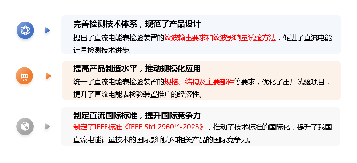 本團體標準廣泛應用于計量院、電網公司、計量檢測機構以及相關制造企業,提升了直流電能計量器具及其檢驗裝置的設計、制造和規模化應用。