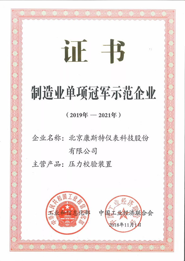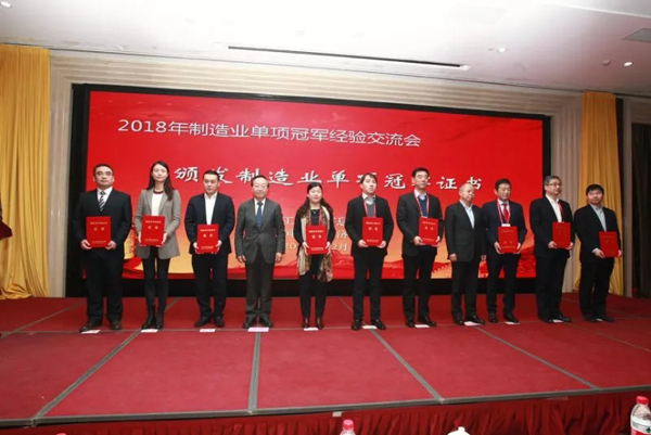 2018年12月18日,工業(yè)和信息化部、中國工業(yè)經(jīng)濟(jì)聯(lián)合會在京組織召開了制造業(yè)單項(xiàng)冠軍經(jīng)驗(yàn)交流會。工業(yè)和信息化部原部長、中國工業(yè)經(jīng)濟(jì)聯(lián)合會會長李毅中,工業(yè)和信息化部副部長王江平等出席了會議,并為制造業(yè)單項(xiàng)冠軍企業(yè)頒發(fā)了證書。