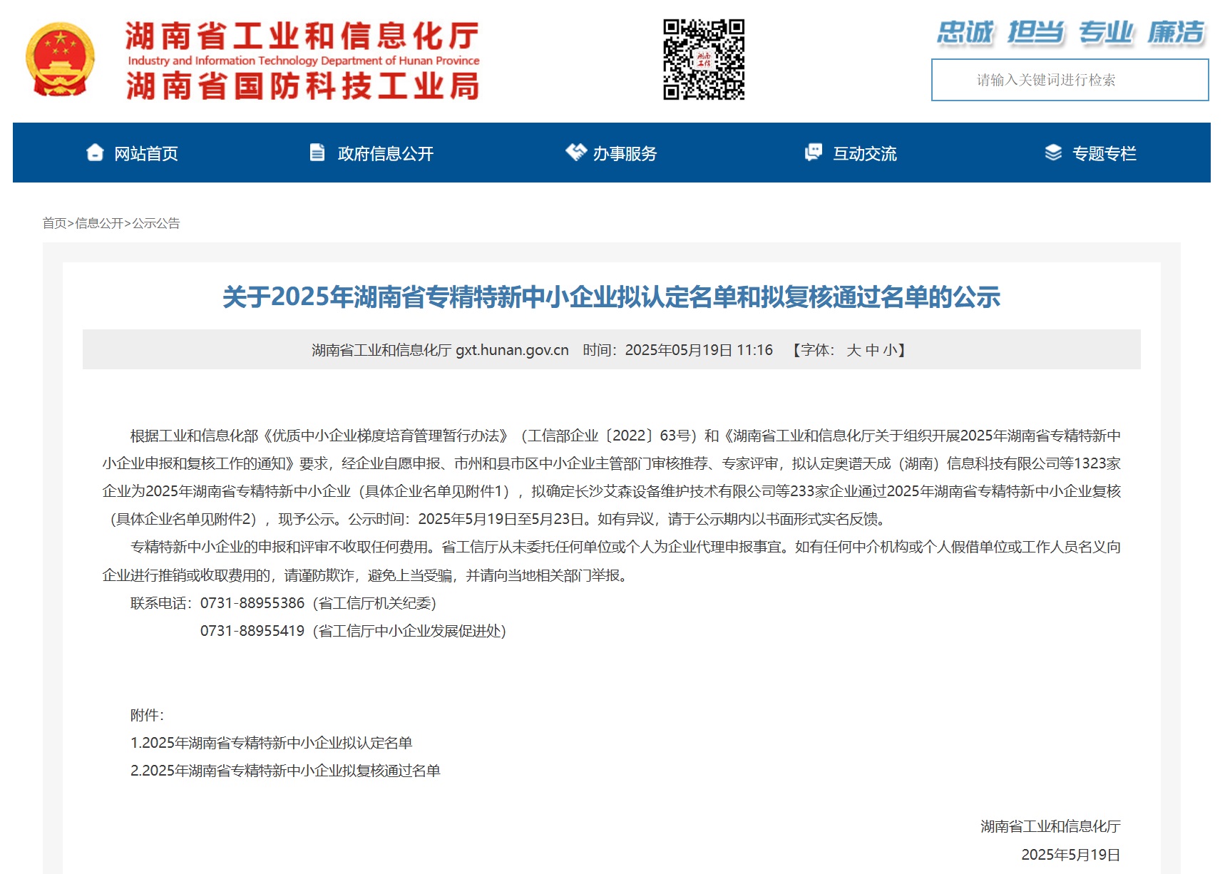 日前,湖南省工業和信息化廳公示《關于2025年湖南省專精特新中小企業擬認定名單和擬復核通過名單》奧譜天成·集團湖南子公司長期深耕光譜儀器制造與應用領域,獲評湖南省專精特新中小企業。