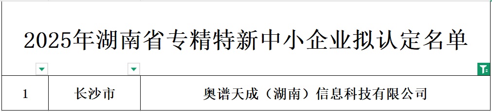 奧譜天成·集團湖南子公司榮獲湖南省“專精特新”中小企業稱號