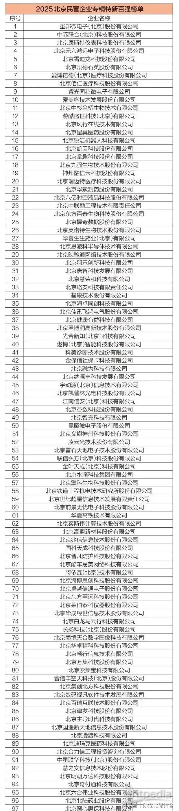 2025北京民營企業(yè)專精特新百強榜以企業(yè)年度經營情況、研發(fā)創(chuàng)新能力、產業(yè)發(fā)展定位等為核心指標,綜合考量企業(yè)依法合規(guī)經營、誠實守信等方面情況,根據核心指標和輔助指標的量化賦值確定入圍企業(yè)。