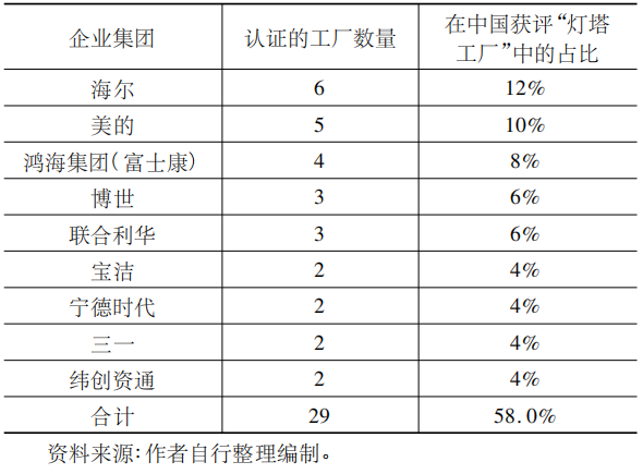 表4 中國(guó)企業(yè)集團(tuán)獲評(píng)“燈塔工廠”認(rèn)證數(shù)量及占比