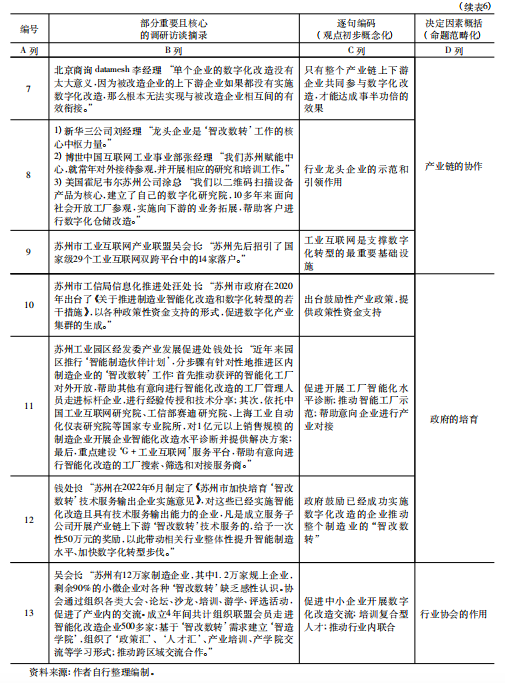 表6 “制造業(yè)數(shù)字化改造決定因素”命題的概念化過(guò)程