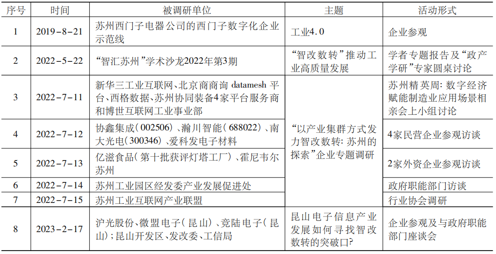表5 蘇州制造業(yè)數(shù)字化改造專題調(diào)研活動(dòng)清單