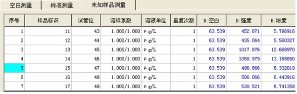 備注: (1)序號1和2為“水樣一”,序號3為“水樣一”的加標,加標濃度為7ng/mL; (2)序號5、6和7為“水樣二”,序號4為“水樣二”的加標,加標濃度為7ng/mL; (3)經計算“水樣一”中含量為56.89 ng/mL,加標回收率為99.84%; (4)經計算“水樣二”中含量為65.03 ng/mL,加標回收率為95.24%。 |