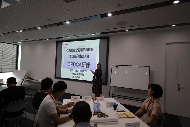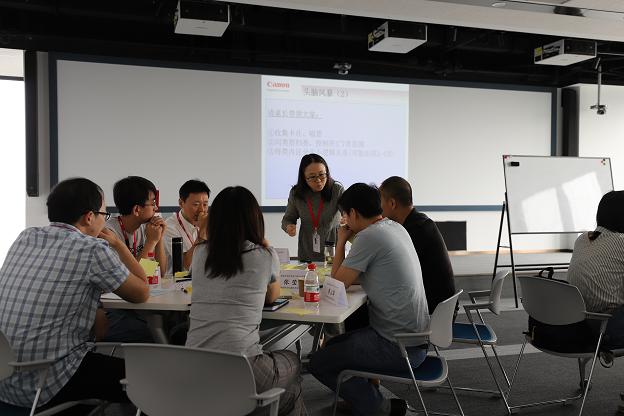 本次培訓歷時兩天,第一天上午,佳能高級培訓講師首先帶學員了解了“OPDCA”培訓課程設置及精華。課上,培訓講師就夢想是什么如何實現夢想這些問題引發學員們的思考,從而引伸到“OPDCA”體系的構建。培訓課程形式新穎活潑,學員們在游戲中學、討論中學、疑問中學,變被動接受為主動思考,不知不覺中理清了思路,掌握了方法。培訓現場熱烈且高效,在老師的引導下,通過互動交流,學員們的思維碰撞刮起了陣陣頭腦風暴,不僅形成了理論與實際的高度融合,還通過現場模擬相關戰略的制定,掌握了戰略制定的精髓及方法,又學習了如何用高效分層的方法(計劃書)來提升執行效果。