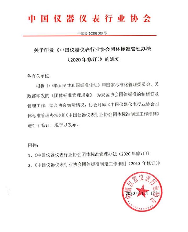 關(guān)于印發(fā)《中國(guó)儀器儀表行業(yè)協(xié)會(huì)團(tuán)體標(biāo)準(zhǔn)管理辦法(2020年修訂)》的通知