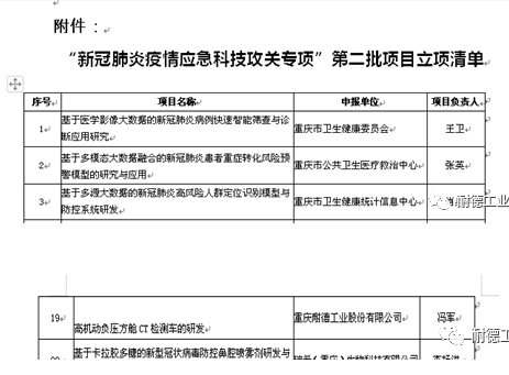 恭喜我司 “高機(jī)動(dòng)型負(fù)壓方艙CT檢測(cè)車(chē)的研發(fā)”項(xiàng)目通過(guò)重慶市“新型冠狀病毒感染肺炎疫情應(yīng)急科技攻關(guān)專(zhuān)項(xiàng)”立項(xiàng)了。