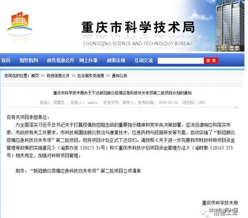 為全面落實(shí)習(xí)近平總書(shū)記關(guān)于打贏(yíng)疫情防控狙擊戰(zhàn)的重要指示精神和黨中央決策部署,堅(jiān)決迅速響應(yīng)和落實(shí)市委、市政府有關(guān)工作要求,積極落實(shí)《加強(qiáng)新型冠狀病毒感染肺炎協(xié)同攻關(guān)強(qiáng)化突發(fā)疫情防控科技支撐的若干舉措》的有關(guān)措施,發(fā)揮科技攻關(guān)在新型冠狀病毒感染肺炎防控的支撐作用,重慶市科學(xué)技術(shù)局啟動(dòng)了新型冠狀病毒感染肺炎疫情應(yīng)急科技攻關(guān)工作。