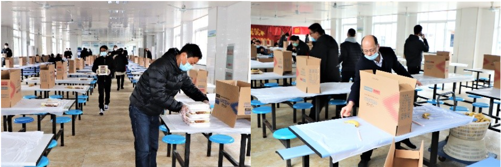 在清晨的寒風中,他們站立于門崗口,手持測溫槍,為前來上班的員工一一測量體溫……不到中午11點,又總能看到那么幾個身影出現在食堂。他們為每批次用餐員工提前鋪好一次性餐布,擺放好餐具、餐盤,直至將所有批次分餐結束……