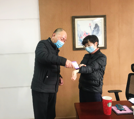 無獨有偶,寧波水表公司行政事務部的又一名干將——唐建中,亦是如此。作為一名退伍軍人,退伍卻不褪色。在這場疫情“阻擊戰”中,他勇當先鋒,積極參與各項一線戰“疫”行動,從物資分發到定點測溫,從隔離安排到保潔監督,處處都能看到他忙碌的身影。