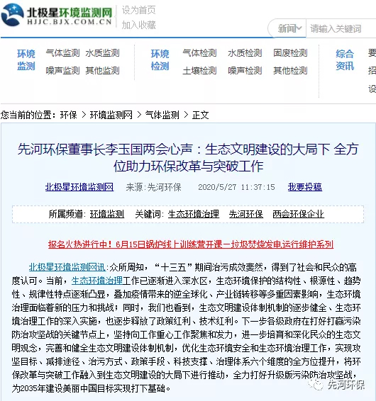 兩會(huì)期間,北極星環(huán)境監(jiān)測(cè)網(wǎng)特邀先河環(huán)保(股票代碼:300137)董事長(zhǎng)李玉國(guó)通過(guò)網(wǎng)絡(luò)媒體向“兩會(huì)”建言獻(xiàn)策。報(bào)道發(fā)出后,立即引發(fā)廣泛關(guān)注。