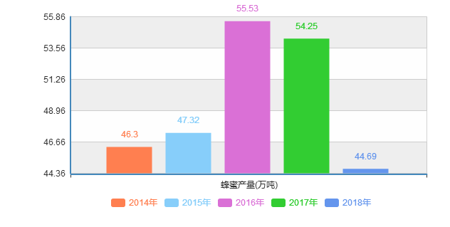 圖1:近五年中國蜂蜜產量統計 來源:國家統計局
