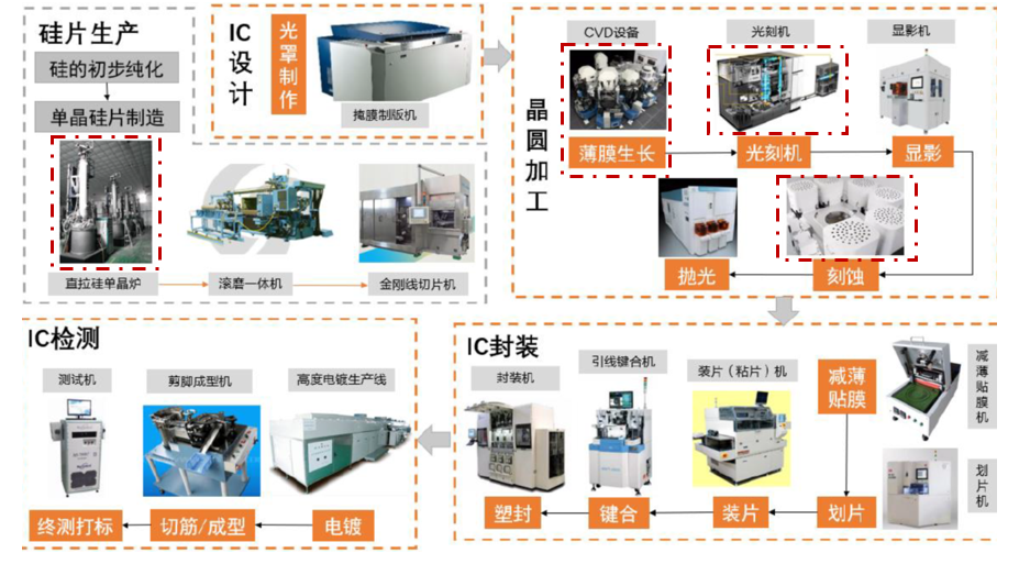 IC制造行業(yè)屬于典型的技術(shù)密集型行業(yè),產(chǎn)品技術(shù)含量非常高,同時對配套產(chǎn)業(yè)要求較高,其中就包括真空設備配套產(chǎn)業(yè)。真空設備(真空閥、真空泵、真空腔體及管道等)是半導體各工藝制程環(huán)節(jié)必備的通用設備,廣泛應用于芯片生產(chǎn)制造過程。
