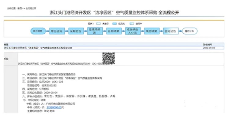 9月3日,廣州禾信儀器股份有限公司(以下簡稱"禾信儀器")以3798·8萬元中標(biāo)浙江頭門港經(jīng)濟(jì)開發(fā)區(qū)“潔凈園區(qū)"空氣質(zhì)量監(jiān)控體系頂目,此次中標(biāo)的是以分布式多通道快速質(zhì)譜儀為核心,并通過多種質(zhì)譜技術(shù)手段構(gòu)建臨海醫(yī)化園區(qū)在線監(jiān)測預(yù)警溯源體系,實(shí)現(xiàn)園區(qū)有有害氣體的快速預(yù)警、惡臭異味氣體的精準(zhǔn)溯源,提高園區(qū)精細(xì)化管理水平。