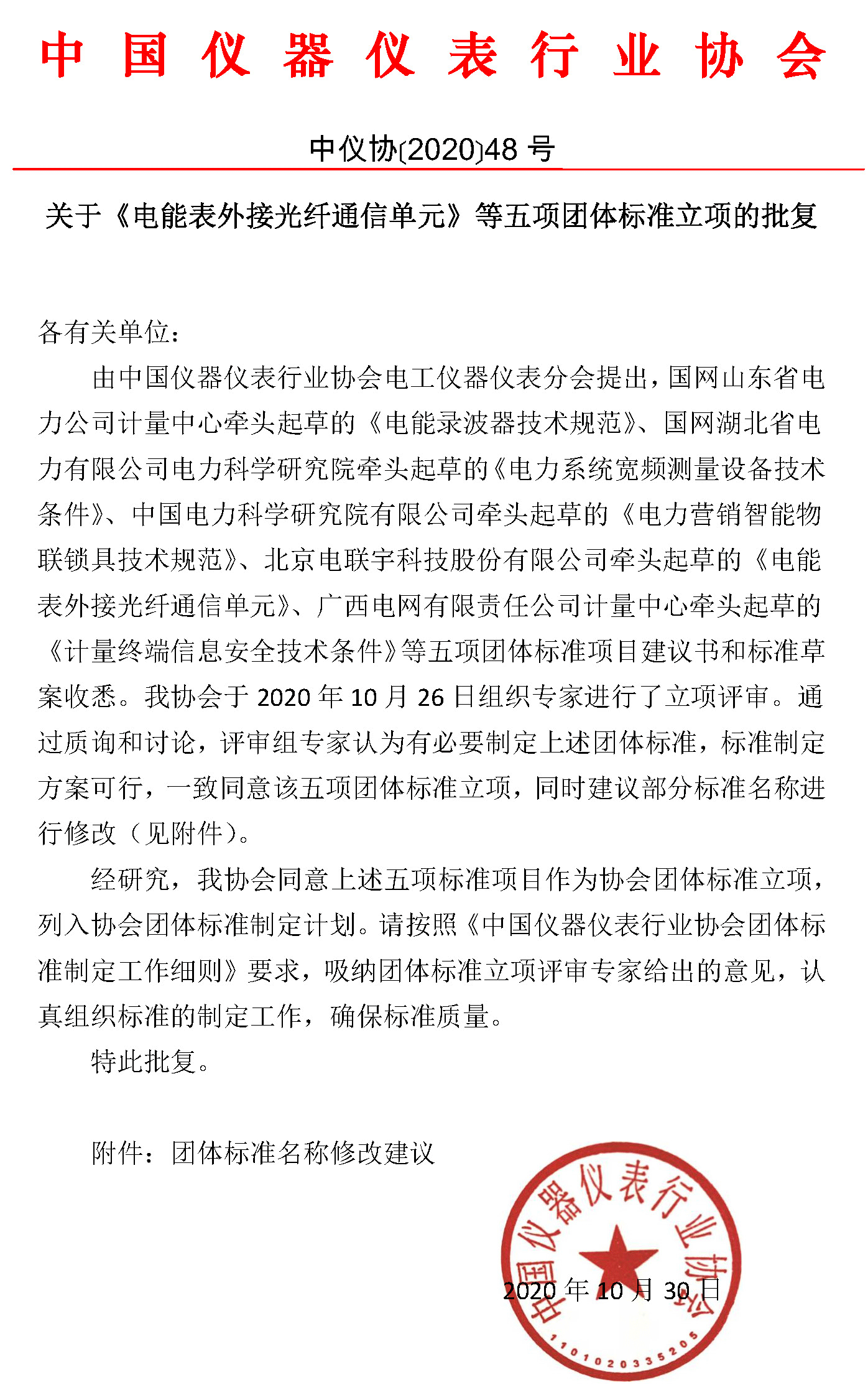 附件:1、關(guān)于《電能表外接光纖通信單元》等五項團體標準立項的批復(fù).pdf