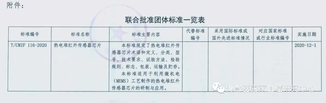 熱電堆紅外傳感器芯片是測溫儀器的核心元器件,針對疫情重點防控物資急需現狀,沈陽儀表院依托傳感器國家工程研究中心技術優勢,制定了團體標準“熱電堆紅外傳感器芯片”。經過標準征求意見、標準審查、標準報批等工作流程,該標準以中國機械工業聯合會2020年第2號公告批準發布,標準編號為:T/CMIF116-2020,實施日期為:2020年12月1日。