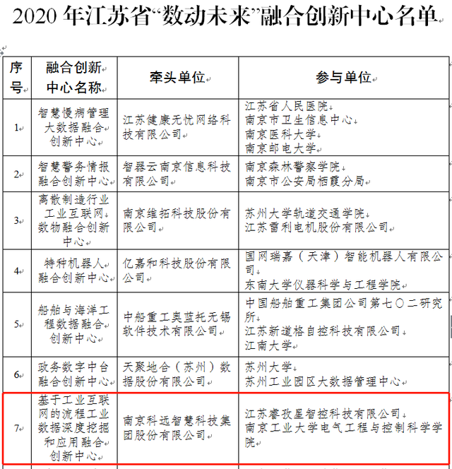 近日,江蘇省工信廳公開(kāi)發(fā)布了《2020年江蘇省“數(shù)動(dòng)未來(lái)”融合創(chuàng)新中心名單》(蘇工信數(shù)據(jù)〔2021〕10號(hào)),南京科遠(yuǎn)智慧科技集團(tuán)股份有限公司(下簡(jiǎn)稱“科遠(yuǎn)智慧”)牽頭成立的“基于工業(yè)互聯(lián)網(wǎng)的流程工業(yè)數(shù)據(jù)深度挖掘和應(yīng)用融合創(chuàng)新中心”成功入選。