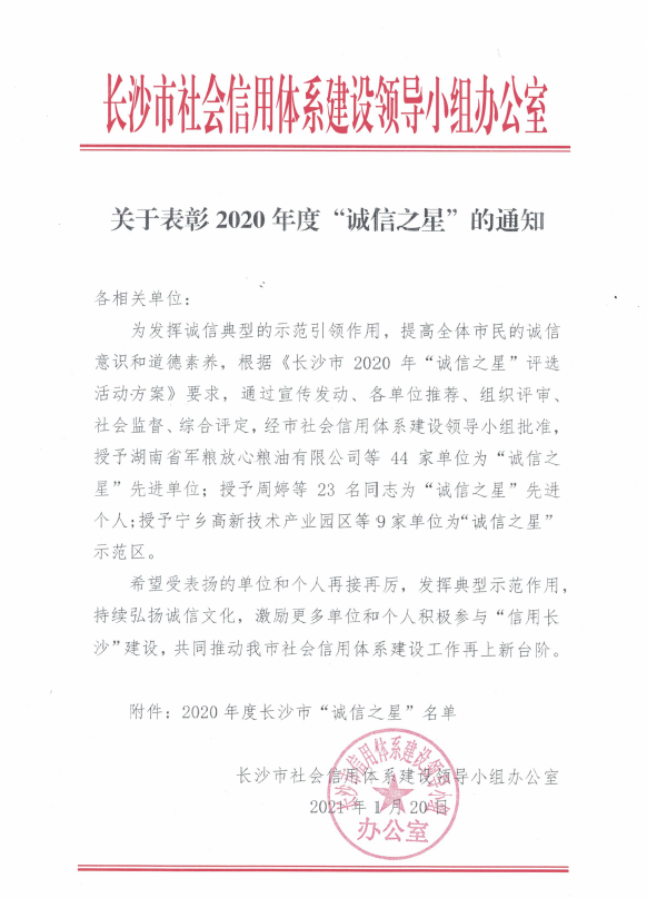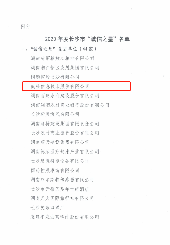 為推進長沙市社會信用體系建設(shè),提高全社會信用水平,樹立“信用長沙”品牌,營造優(yōu)良營商環(huán)境,根據(jù)《長沙市2020年“誠信之星”評選活動方案》要求,經(jīng)過層層推薦、審核、評審,威勝信息技術(shù)股份有限公司榮獲長沙市社會信用體系建設(shè)領(lǐng)導(dǎo)小組辦公室頒發(fā)的“誠信之星”榮譽稱號。