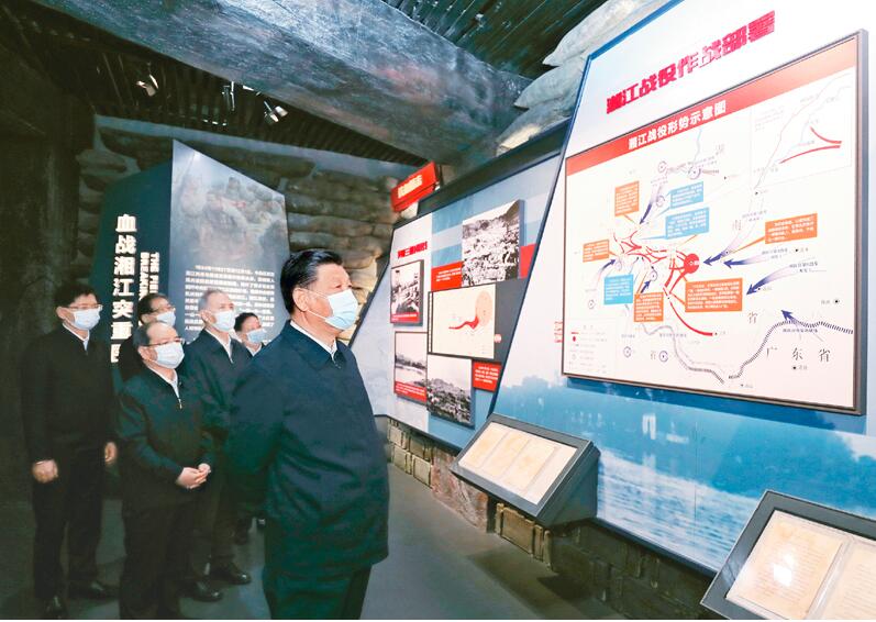 2021年4月25日至27日,中共中央總書記、國(guó)家主席、中央軍委主席習(xí)近平在廣西考察。這是25日上午,習(xí)近平在桂林市全州縣,參觀紅軍長(zhǎng)征湘江戰(zhàn)役紀(jì)念館。 新華社記者 鞠鵬/攝