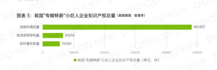 在這些“專精特新”小巨人企業(yè)中,專利申請總量48.18萬件,平均單企業(yè)專利申請98件;有效發(fā)明專利量6.57萬件,平均每家企業(yè)有效發(fā)明專利量約13件;軟件著作權(quán)共5.56萬件,平均每家企業(yè)擁有軟件著作權(quán)約11件。