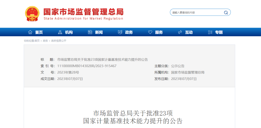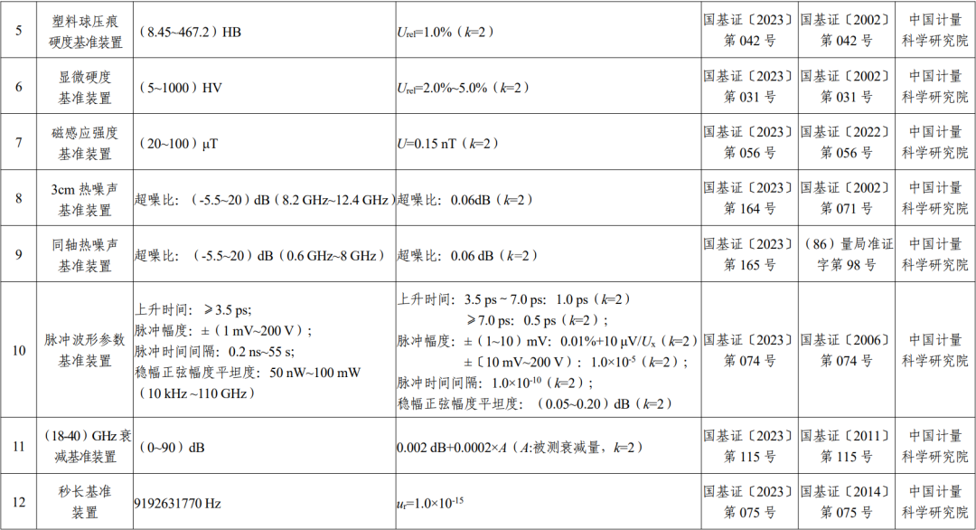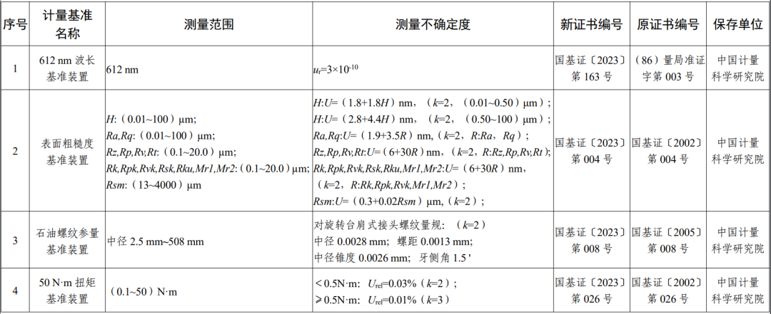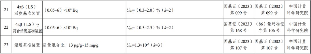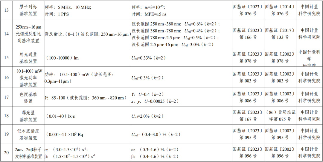 23項技術(shù)能力提升的國家計量基準(zhǔn)名單