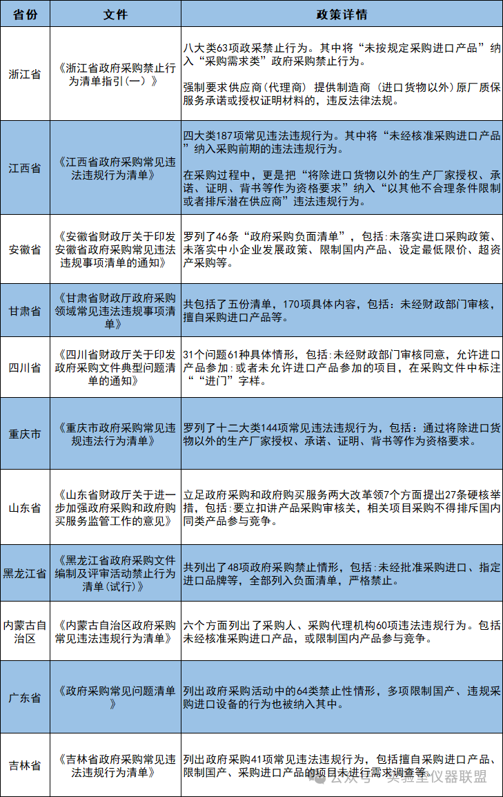 包括浙江、廣東、黑龍江、吉林等多省接連發布通知,著重強調應當采購本國產品,把政府采購中限制國產設備、違規采購進口等行為,納入負面清單嚴格禁止。