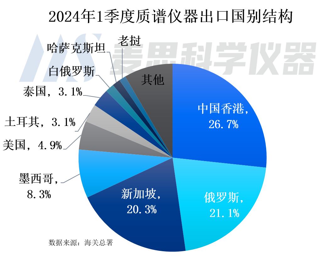 2024年1季度我國(guó)質(zhì)譜儀器出口金額為2300萬(wàn)美元(約合人民幣1.64億元),同比下降8%。