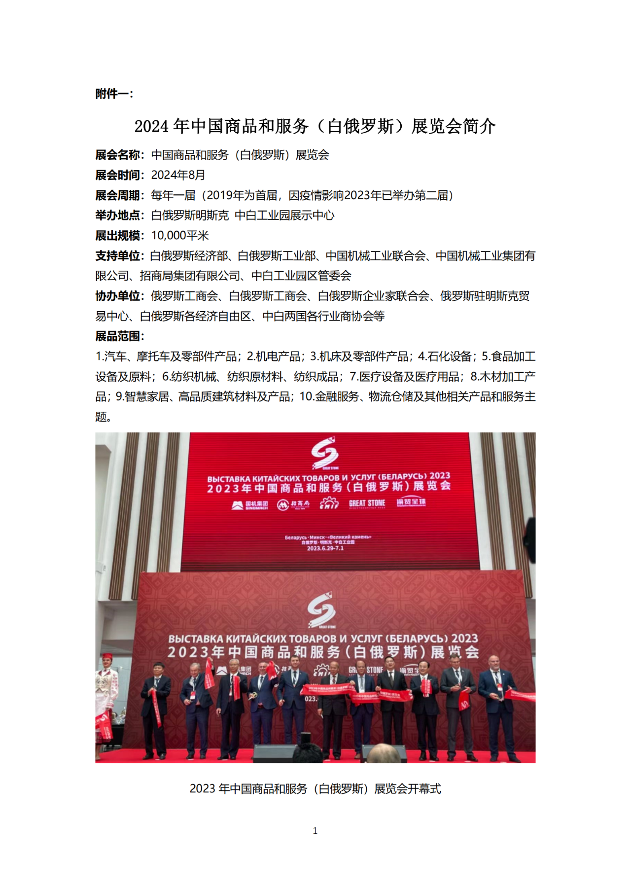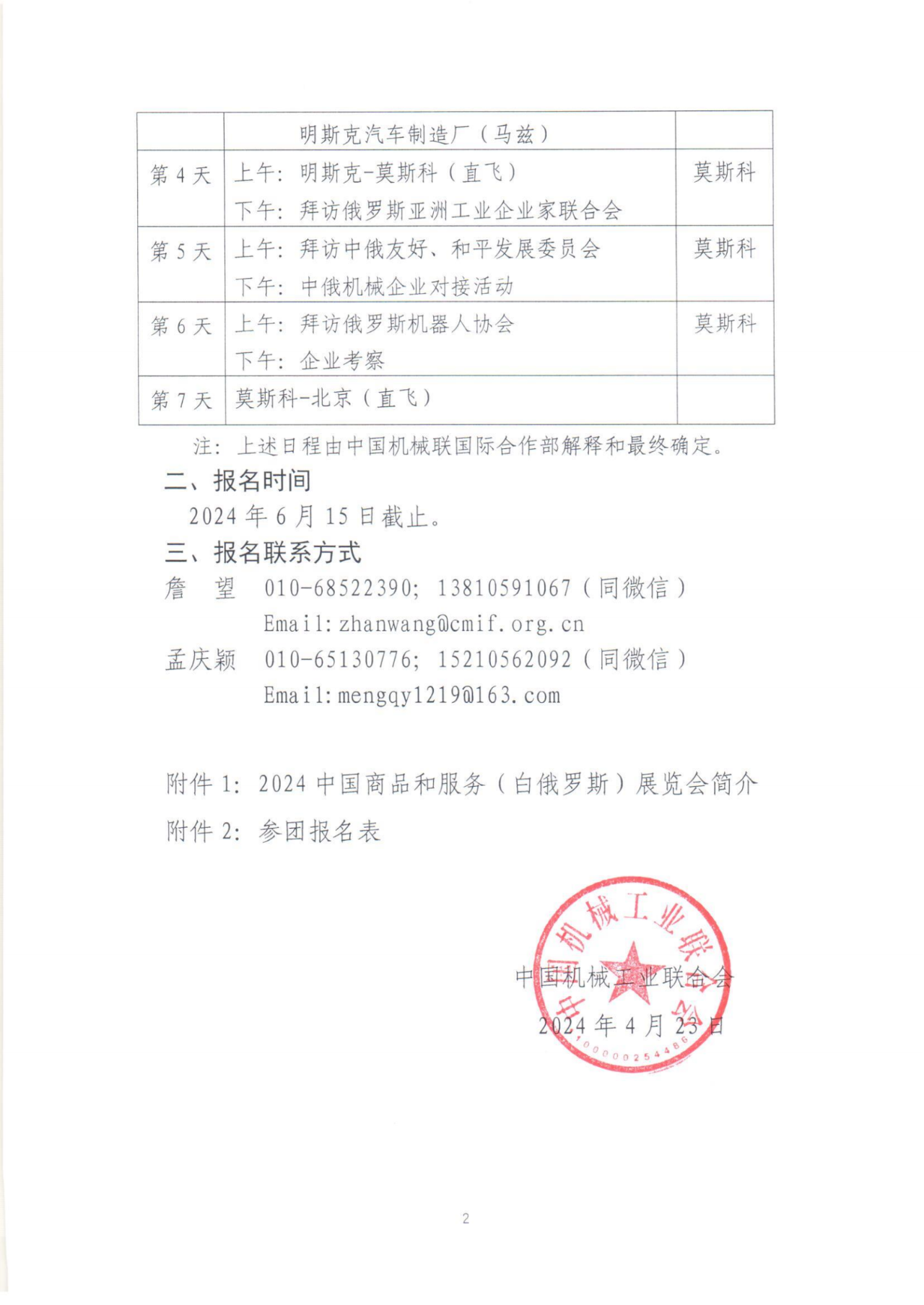 為深入踐行“一帶一路”倡議,深化中白、中俄機(jī)械行業(yè)對(duì)接合作,助力中國機(jī)械聯(lián)會(huì)員企業(yè)進(jìn)一步拓展歐亞經(jīng)濟(jì)聯(lián)盟市場,搭建企業(yè)間國際貿(mào)易和投資橋梁,中國機(jī)械工業(yè)聯(lián)合會(huì)擬于2024年8月中下旬組團(tuán)赴白俄羅斯、俄羅斯考察,開展產(chǎn)業(yè)交流和對(duì)接。現(xiàn)將活動(dòng)通知發(fā)布如下。