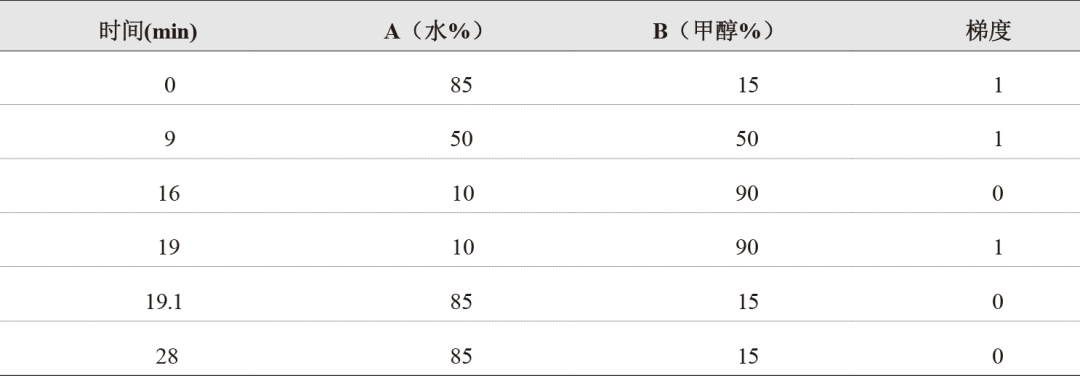 表 1 梯度洗脫表