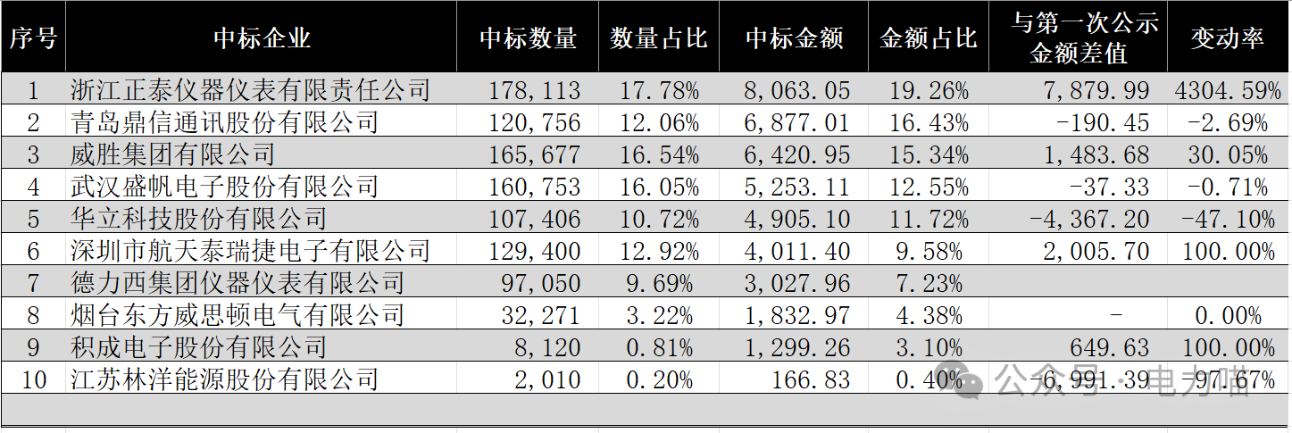 更改后最終公示:總金額41857.65萬元,10家企業(yè)中標。