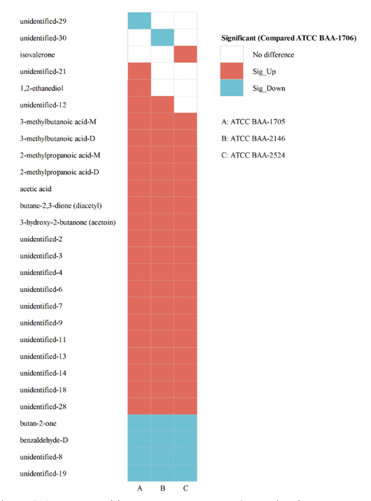 6 ATCC BAA-1705菌株加入CBPM抑制劑后的VOCs變化      7 加入CBPM抑制劑后的標準菌株VOCsPCA