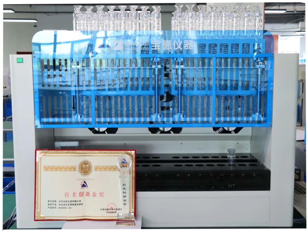 在本年度的評(píng)選中,北京寶德儀器有限公司(以下簡(jiǎn)稱“寶德儀器”)自主研制的BCODCr-40 全自動(dòng)化學(xué)需氧量(重鉻酸鹽法)分析儀榮獲“自主創(chuàng)新金獎(jiǎng)”。