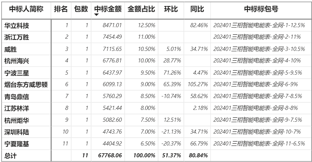 總金額6.78億元,11家企業(yè)實現(xiàn)中標(biāo),華立中標(biāo)最大包8471.01萬元;