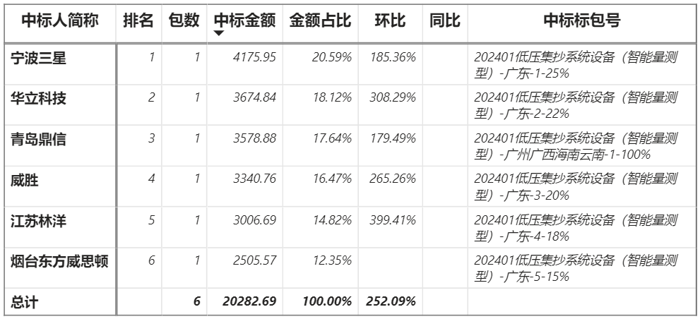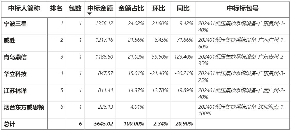 總金額2.03億元,6家企業(yè)實現(xiàn)中標(biāo),寧波三星中標(biāo)最大標(biāo)包4175.95萬元;