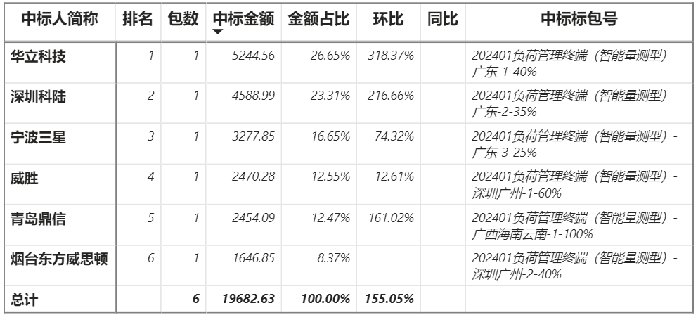 總金額1.97億元,6家企業(yè)實現(xiàn)中標(biāo),華立中標(biāo)最大包5244.56萬元;
