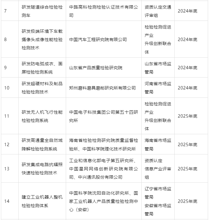 檢驗檢測促進產業優化升級行動重點項目