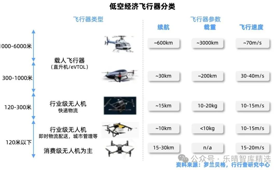 低空經濟的飛行器根據飛行航程高度不同可分為: