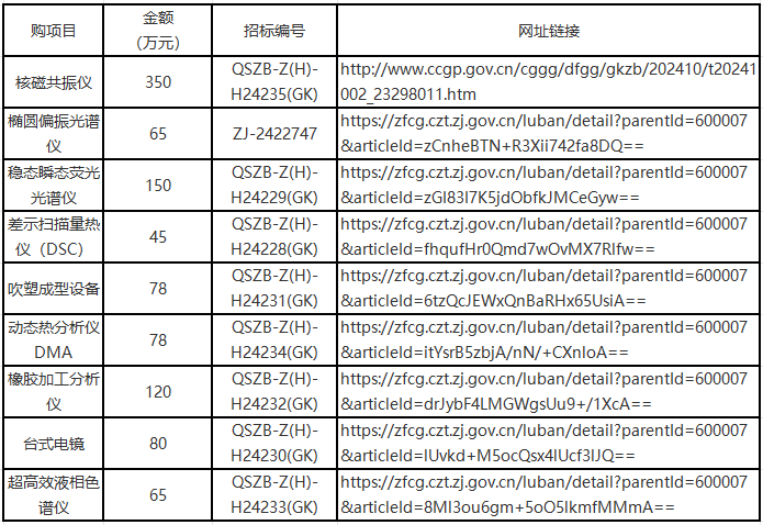 近期,浙江求是招標(biāo)代理有限公司關(guān)于浙江理工大學(xué)一批設(shè)備發(fā)布公開招標(biāo)公告,本網(wǎng)匯總這批采購項目,該套招標(biāo)總價超1000萬,涵蓋核磁、光譜、超高效液相色譜、電鏡、量熱儀DSC、動態(tài)熱分析儀DMA等設(shè)備。詳見下表: