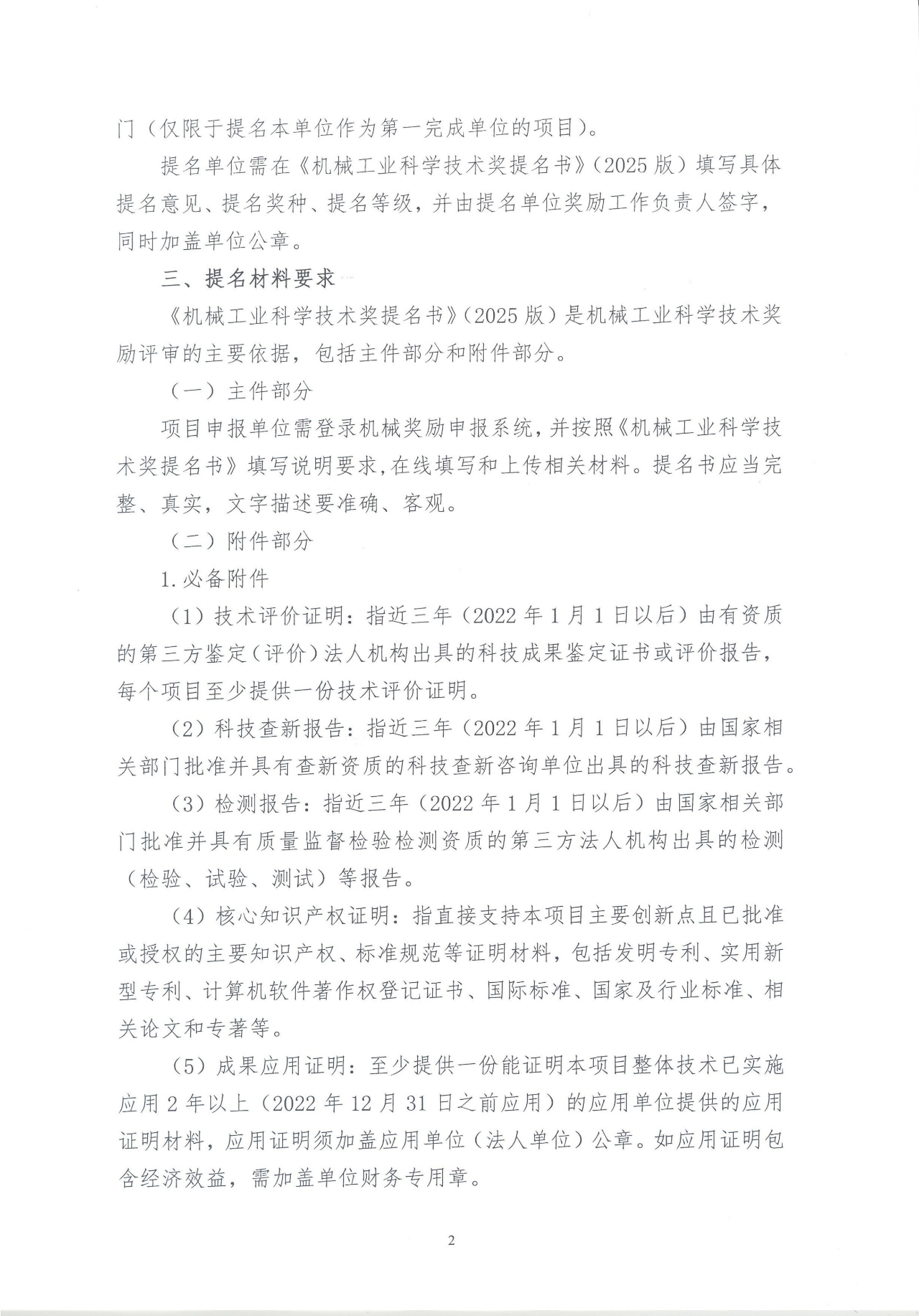 關于開展2025年度“機械工業科學技術獎”提名工作