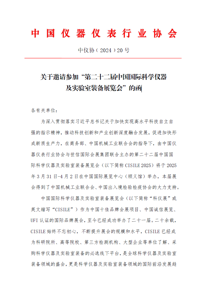 關(guān)于邀請參加“第二十二屆中國國際科學儀器及實驗室裝