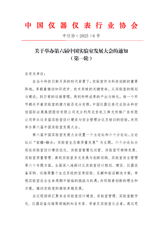 關于舉辦第六屆中國實驗室發展大會的通知(第一輪)