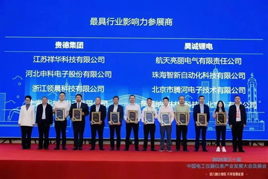 展會規(guī)模空前,參會人數(shù)400余人,近200家參展企業(yè)展示了傳感器、電容器、開關(guān)與繼電器等產(chǎn)品。采用 “以會帶展、以展促會” 模式,打通電工儀器儀表行業(yè)全產(chǎn)業(yè)鏈條,推動(dòng)各環(huán)節(jié)緊密銜接與協(xié)同發(fā)展。今年恰逢第50屆行業(yè)大會,為彰顯會議的特殊意義和重要貢獻(xiàn),特別舉辦了“最具行業(yè)影響力展商”評選活動(dòng),評選出貴德集團(tuán)等十家行業(yè)內(nèi)最具代表性的品牌企業(yè)。工業(yè)和信息化部裝備工業(yè)一司原一級巡視員、中國儀器儀表行業(yè)協(xié)會九屆理事會副理事長候選人(駐會)苗長興,中國儀器儀表行業(yè)協(xié)會副秘書長程紅,以及哈爾濱電工儀表研究所有限公司黨委書記、董事長趙斌為這10家最具影響力的參展商隆重授牌。