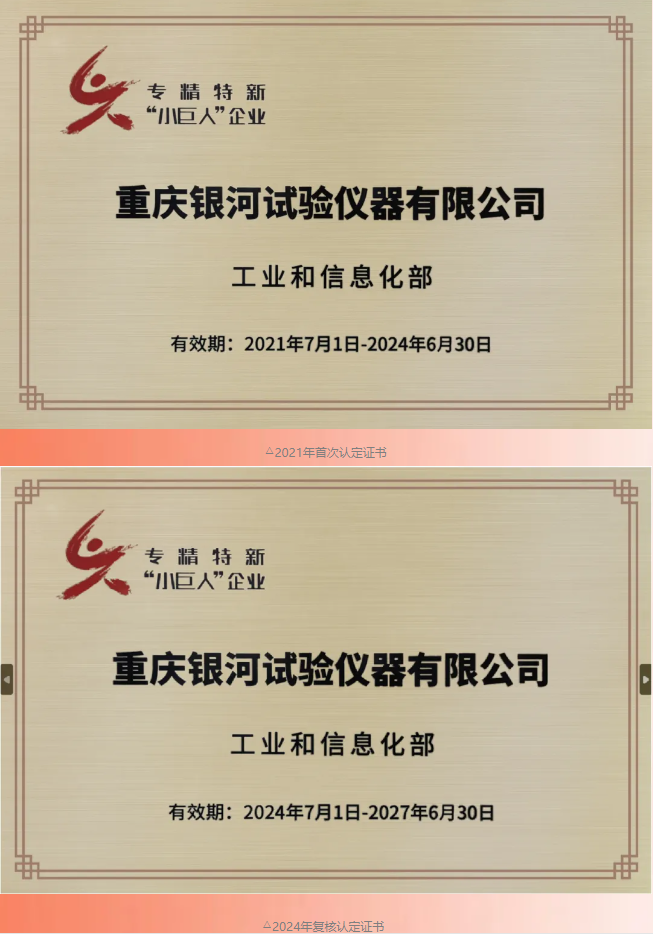 202492,重慶市經濟和信息化委員會公示了通過審核的企業名單,重慶銀河試驗儀器有限公司在第三批專精特新小巨人復核通過企業公示名單中。