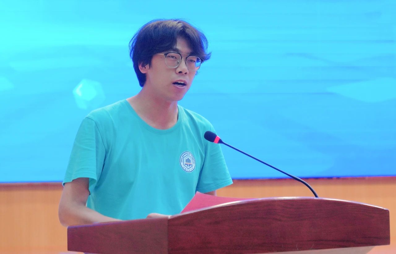 會上,安徽天康集團人力資源部部長徐宏勤就學生暑期社會實踐安排進行了詳細匯報,安徽工業大學學生李晨旭作為學生代表上臺發言。