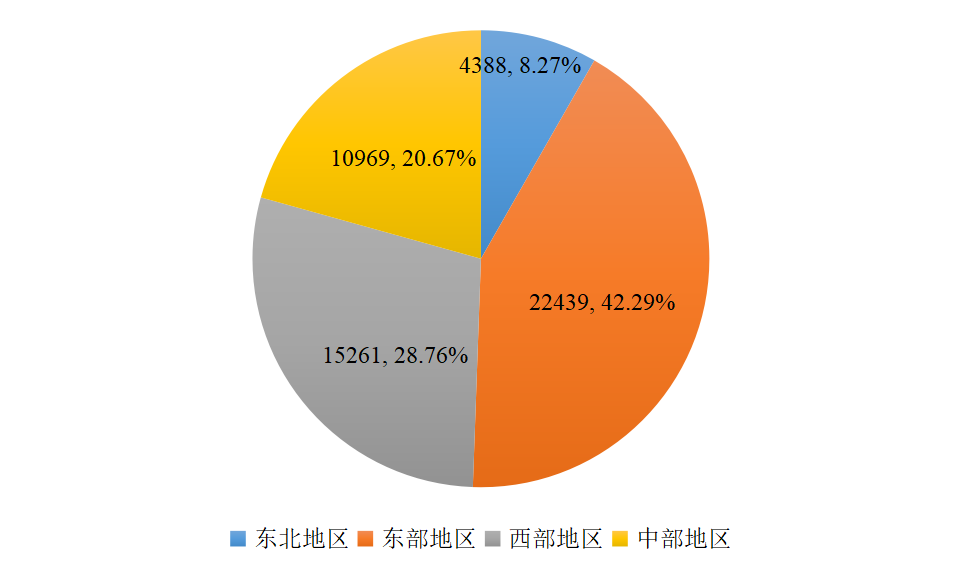 圖4-1 2024年全國(guó)檢驗(yàn)檢測(cè)機(jī)構(gòu)區(qū)域分布(單位:家)