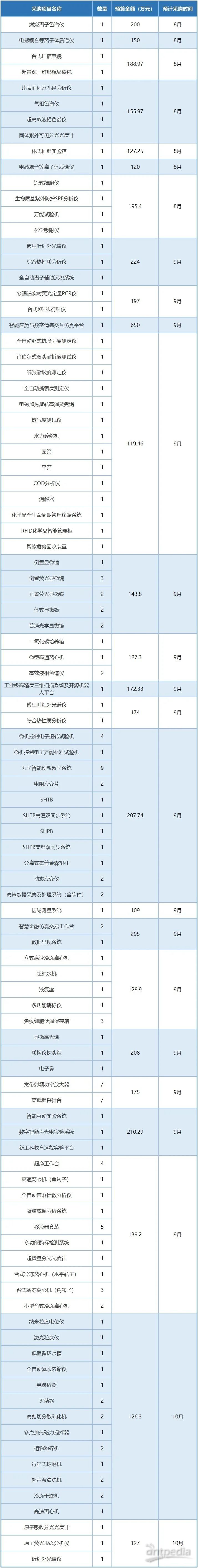 近5000萬 華南理工大學8至10月政府采購意向公
